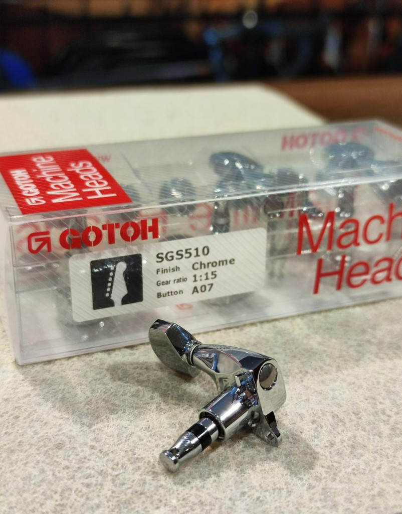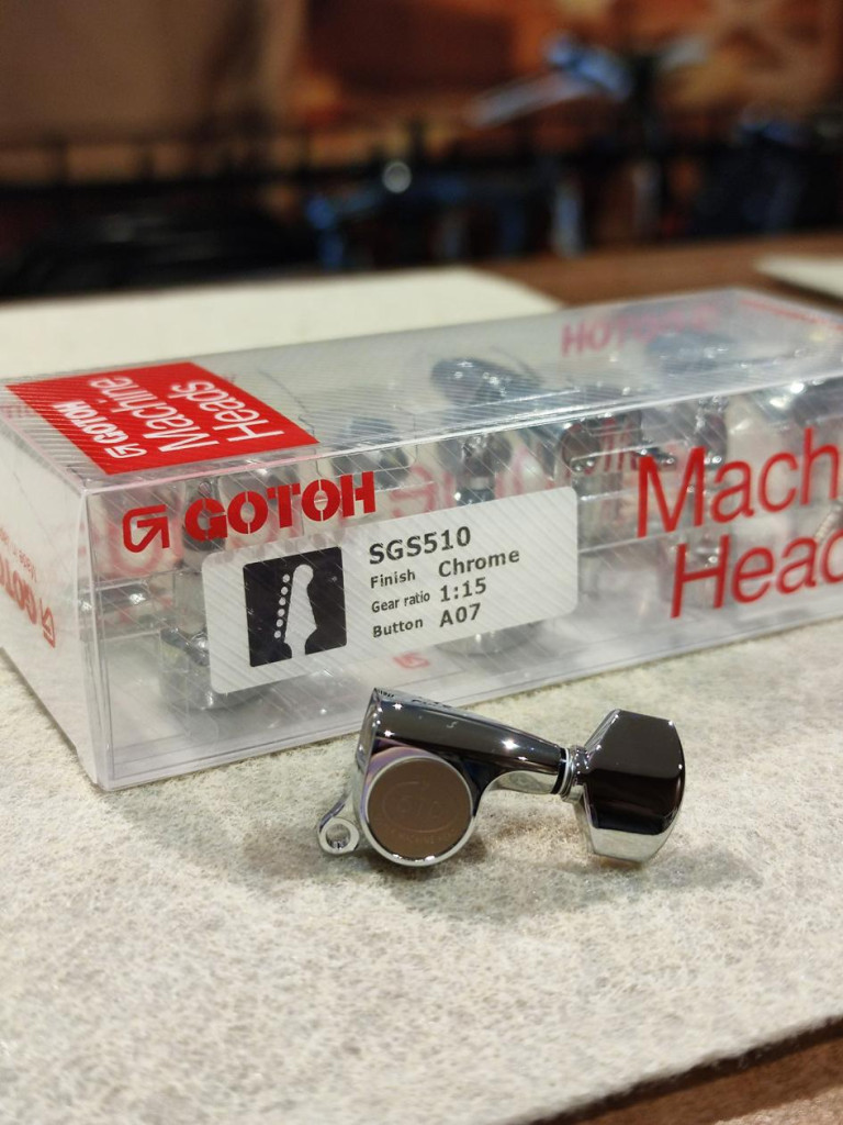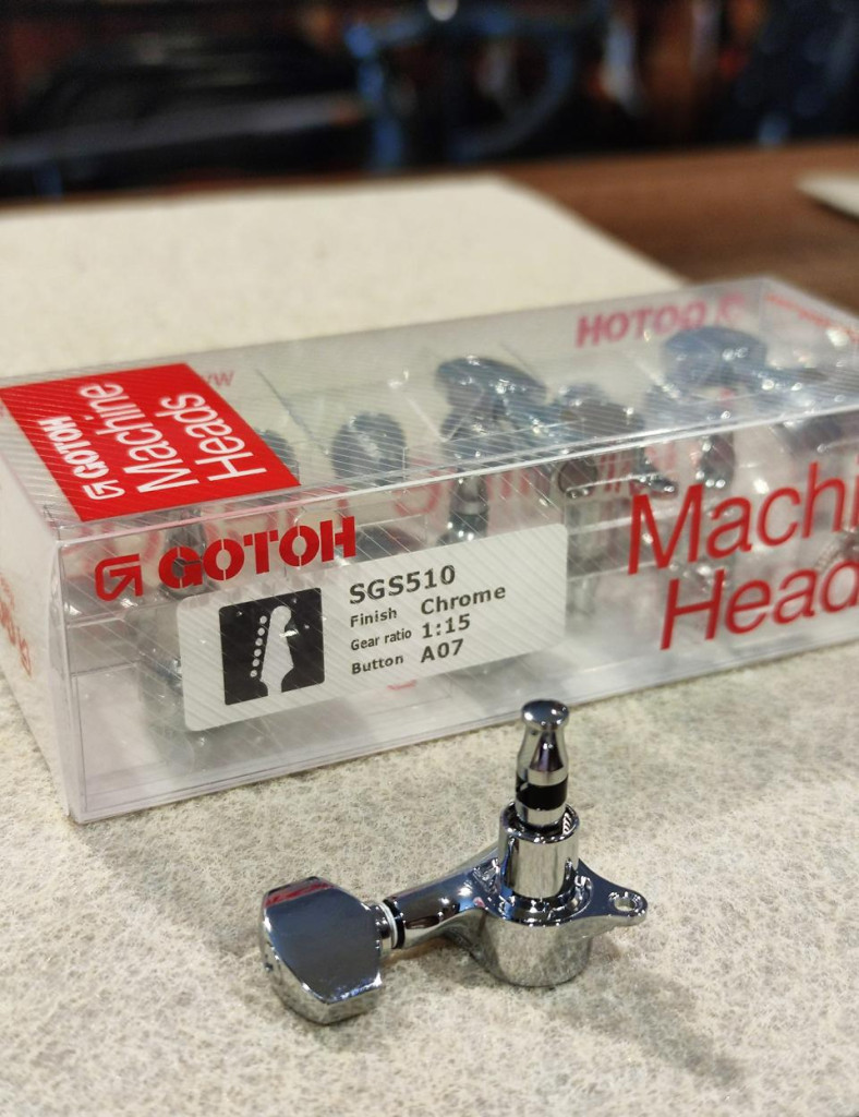 Gotoh SGS510 króm hangolókulcs 6 egysoros baloldali, kicsi A07 gombokkal. Az 1:15-ös áttétel precíz hangolást biztosít. A pontos méretek a galériában láthatók.