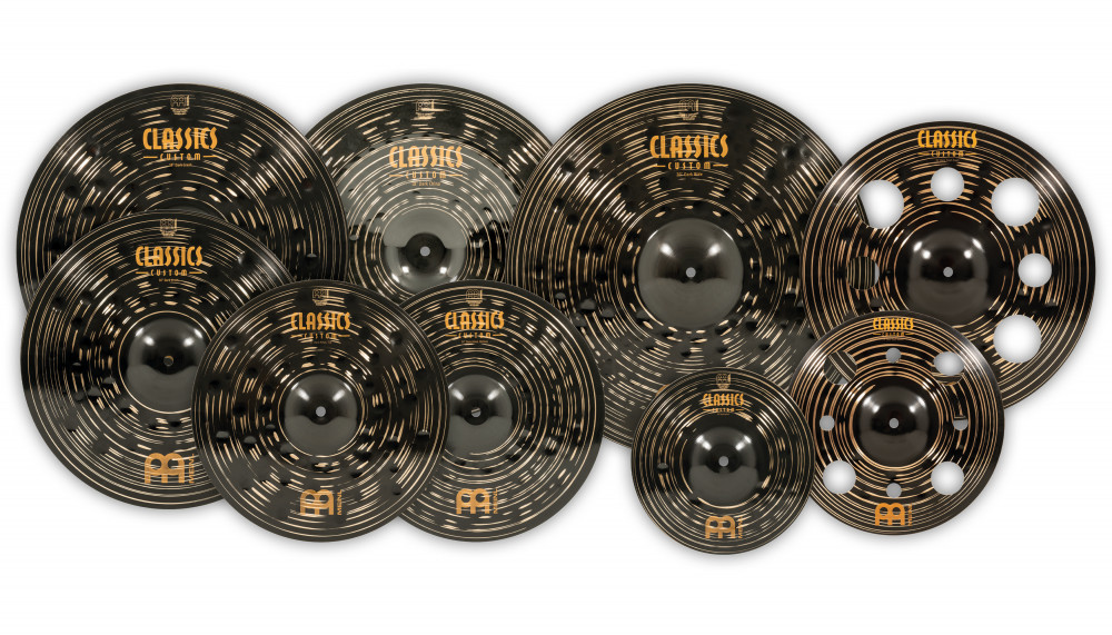 Das Classics Custom Dark Expanded Set besteht aus einer 14" Dark Hihat, einem 16" Dark Crash, einem 16" Dark Trash Crash, einem 18" Dark China, einem 18" Dark Crash und einem 20" Dark Ride. In diesem Vorteilsset sind zudem ein kosenloses 10" Dark Splash und ein 12" Dark Trash Splash enthalten.