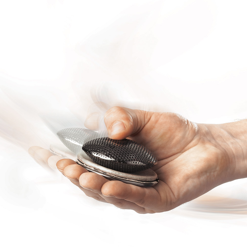 A MEINL Headed Spark Shaker egyik oldala egy dobbőrös! A prémium kecskebőr és az acéltest ragyogó meleg hangok és fényes fémhangok kombinációját biztosítják.