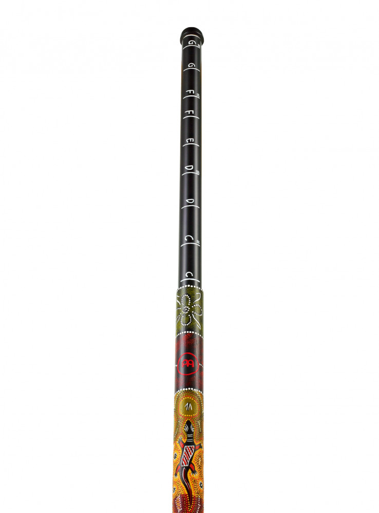 Die Tonhöhe des MEINL Posaunen-Didgeridoos kann wie bei einer Zugposaune variieren. Ein Abschnitt hat das Mundstück und gleitet in den Glockenteil. Die Tonhöhenabstände sind deutlich an der Seite des Instruments eingezeichnet. Handgefertigt mit exotischer Punktmalerei im australischen Stil.